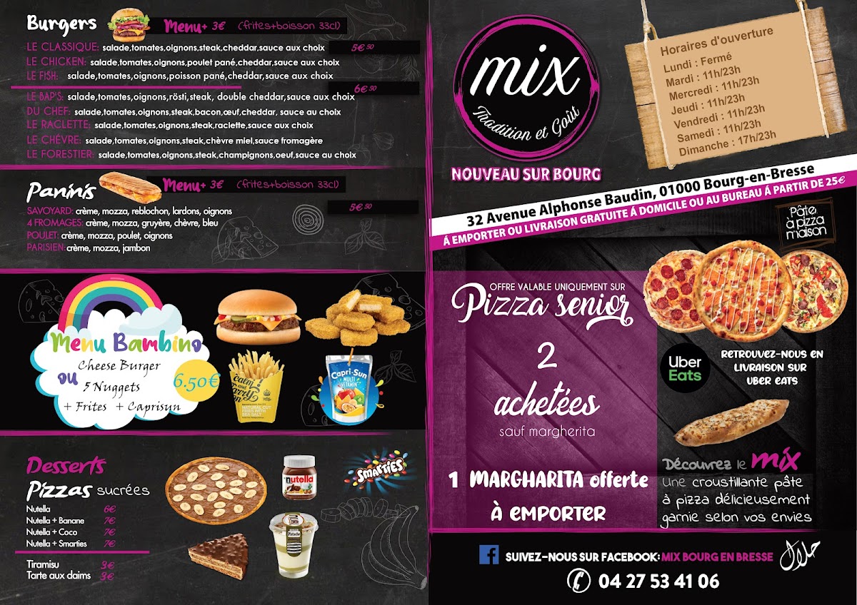 Welcome to Mix Bourg en Bresse, a cozy pizza restaurant nestled in the heart of Bourg-en-Bresse. Located at 32 Av. Alphonse Baudin, this vibrant eatery is renowned for its delicious menu and friendly service. The culinary highlights include their standout tacos, particularly the chicken variant, praised for its generous portions and delightful white sauce that leaves diners craving more.